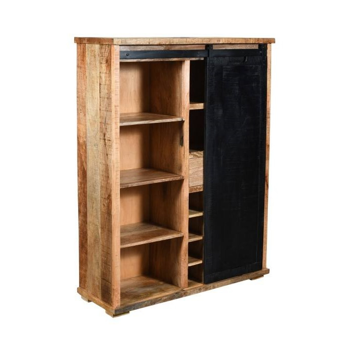 Bekijk deze prachtige drankkast met een industriƫle afwerking, gemaakt van mangohout in combinatie met zwart staal.