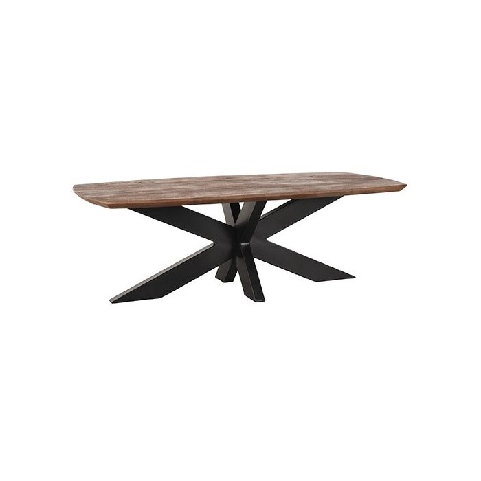 Salontafel Deens ovaal gemaakt van mangohout met een spinpoot van zwart staal. Afmetingen:Â 130*70*45 cm.