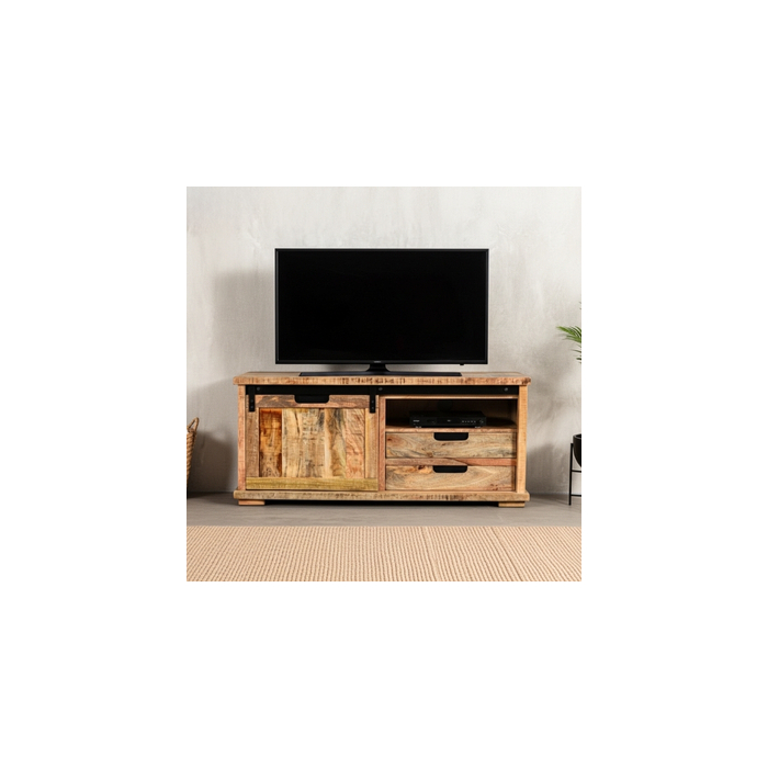Dit compacte tv meubel heeft afmetingen van 55 cm hoog, 40 cm diep en 110 cm breed.